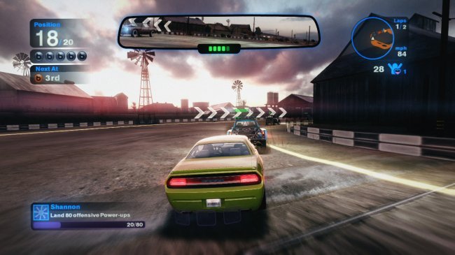 Eight different types of power boosters are offered to you. The Shunt launches a homing missile either in front or behind the player’s car which does damage to the cars by hitting and throwing it in air. The Nitrous Oxide for speed boost is the boost you will be using for the entire game. The Bolt is another power that you can use which fires three bullets rapidly which causes big damage to the opponents. There are some defensive powers present like God shield which avoids all the damages. The Mine which is used to avoid your opponent at high speeds and last one is The Barge it pushes other cars that are close to you into a spin. Using these weapons the player will get a chance to play either on the offensive or the defensive. Still with us for the game, download BLUR free for PC from the end of the article.